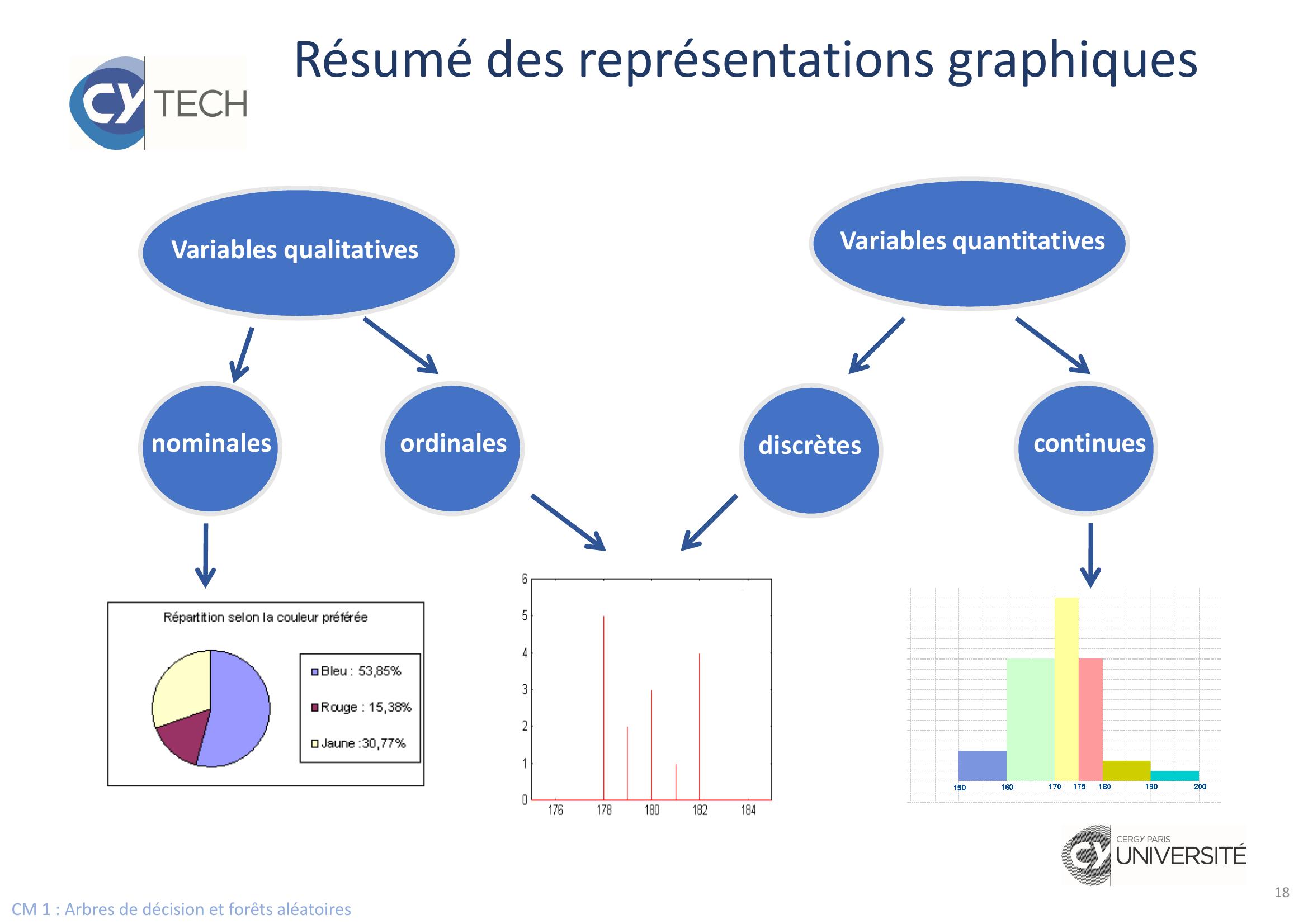 Page 18 : CM 1 : Arbres de décision et forêts aléatoires18Résumé des représentations graphiquesEISTI : Département Mathématique : Introduction à la statistique descriptive1818Variables qualitativesVariables quantitativesnominalesordinalesdiscrètescontinues