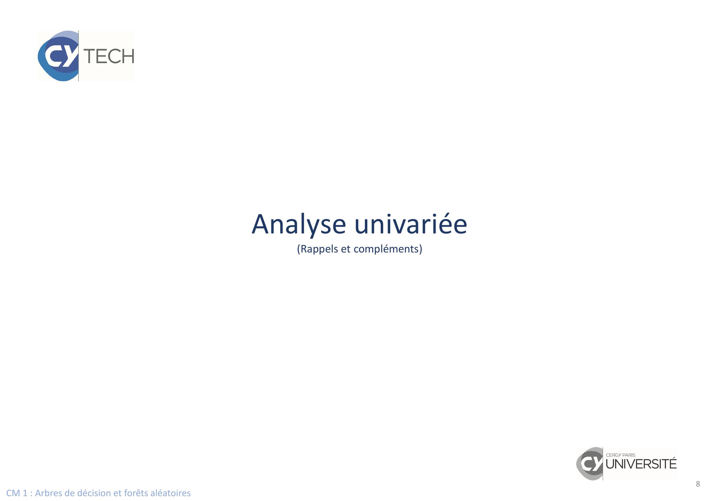 Page 8 : CM 1 : Arbres de décision et forêts aléatoires8Analyse univariéeRappels et compléments