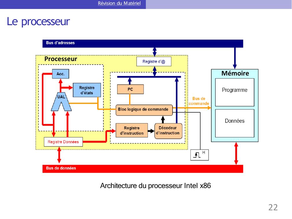 Page 22 : Révision du MatérielLe processeurArchitecture du processeur Intel x8622MémoireProcesseur