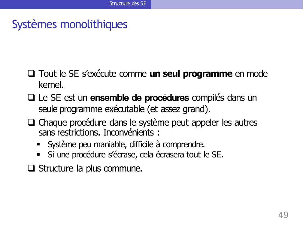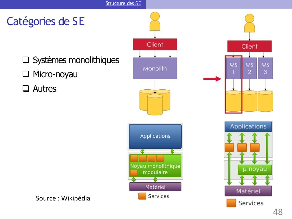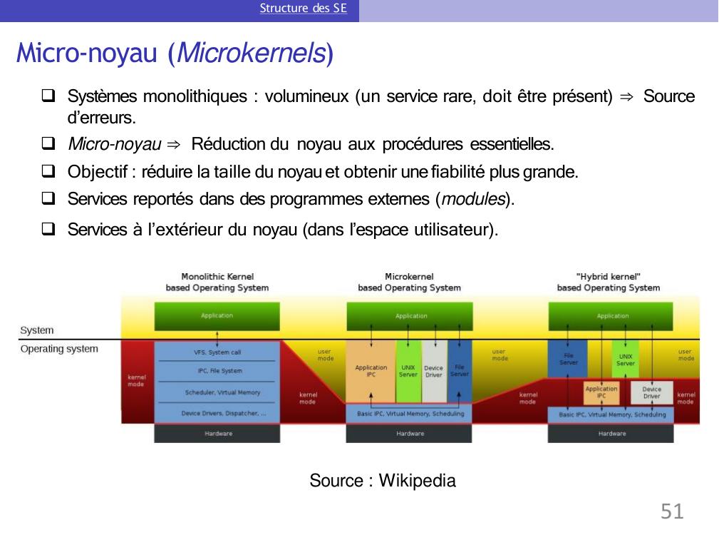 Page 48 : Structure des SECatégories de SESystèmes monolithiquesMicro-noyauAutres48Source : Wikipédia