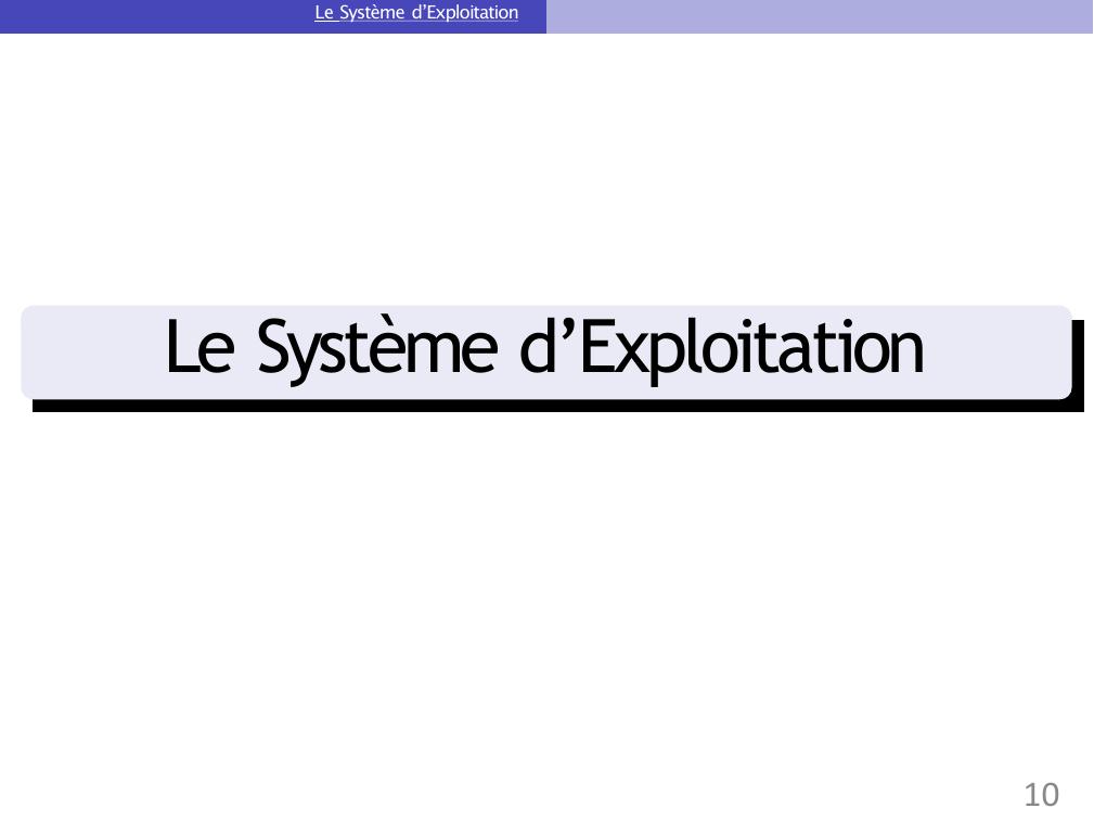 Page 10 : Le Système d’ExploitationLe Système d’Exploitation10