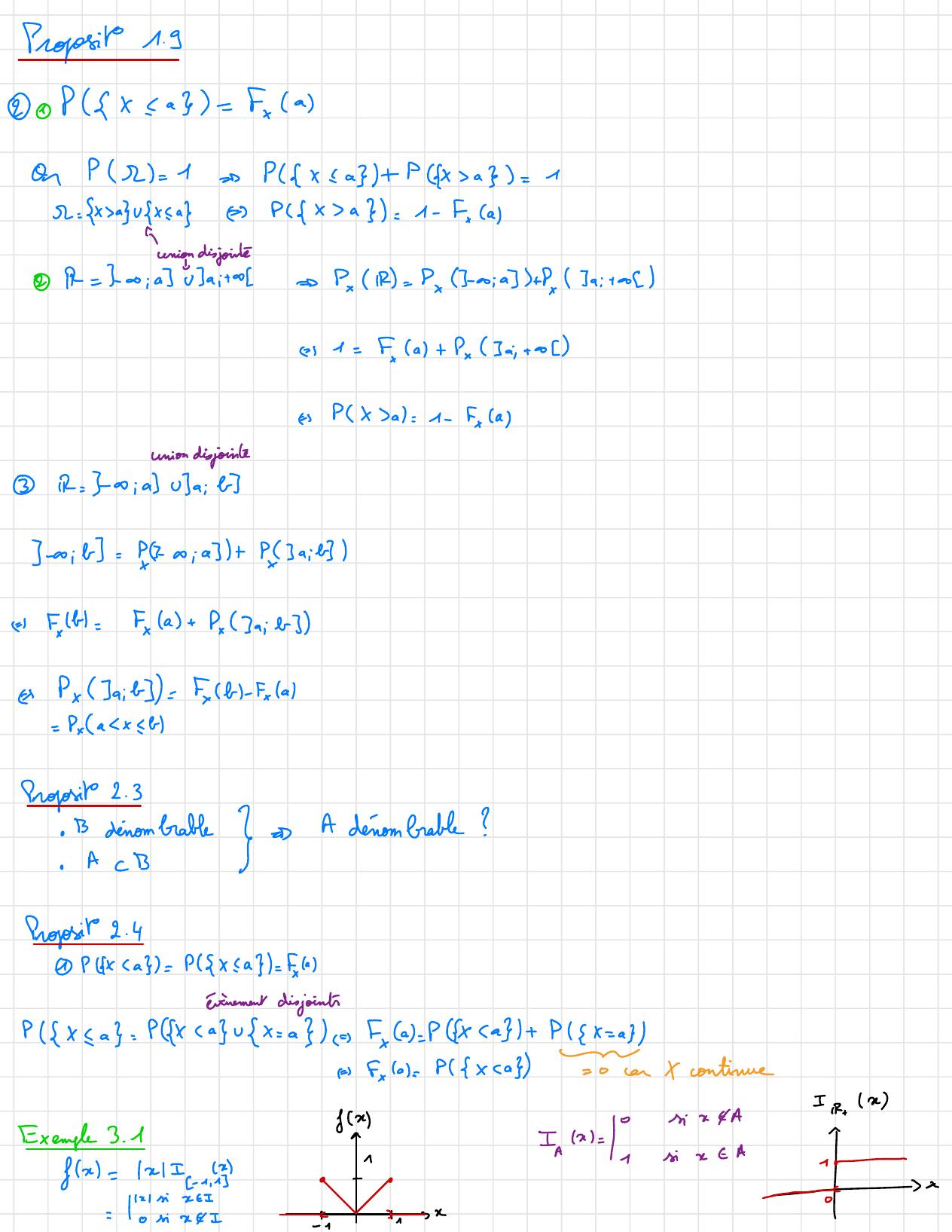 Page 1 : Proposito 1 . 9②PXa3 = FyaGPr = 1=PXa3+ PXaz =1& : x aguxaEsPXa3=1- F, a↑-. tunion dison↓②R = - 0 ; a viaito=PxIR= Px-via+P, ai+ 1911=F, a + PxJa+2EsPXa =1-Fyaunion disjoints③R = J ; a ua ; bJ-o ; b= P- n = a + Pa ;bEF, b=Fya + Pyja ; bEPxJaib =Fxb- Fya= PxaXbProposito2. 3·derombable 3A denombrable?·A cBProposit 2. 40 PXab = PGXay = Fyevenement disjointe↑Xa= PX avx= a3= Fya =PXa3 + PX = ab-Fya = PXa3=0can X continueFir, xExemple 3. 1fxEn 1 =/eiuenfx =x =xC1&-2- 1 , 1①-⑨-= Inlei-1In