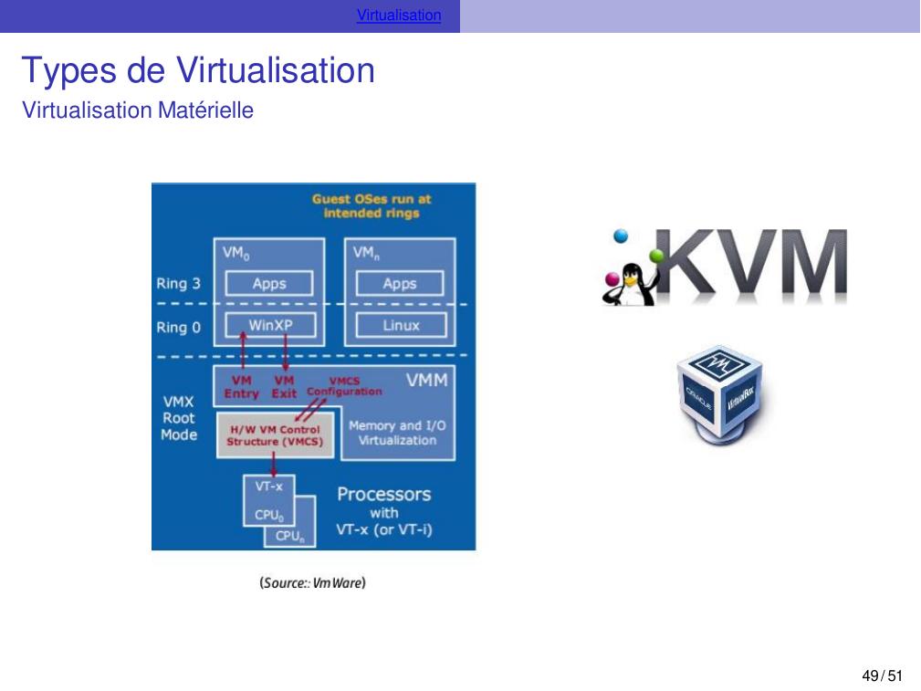Page 50 : VirtualisationTypes de VirtualisationVirtualisation Matérielle49/ 51