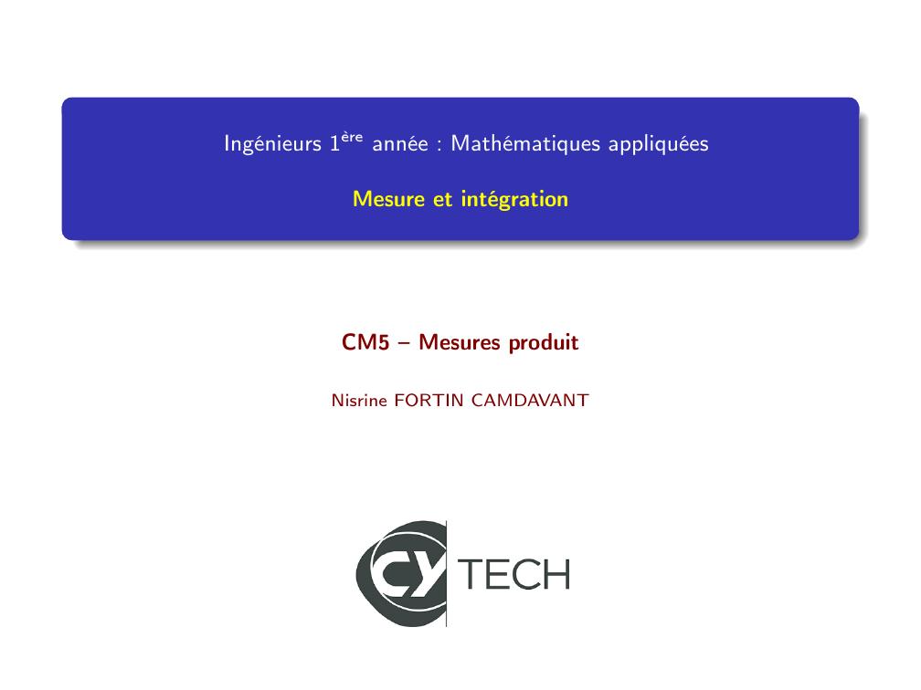 Page 1 : Ingénieurs 1ère année : Mathématiques appliquéesMesure et intégrationCM5 – Mesures produitNisrine FORTIN CAMDAVANT